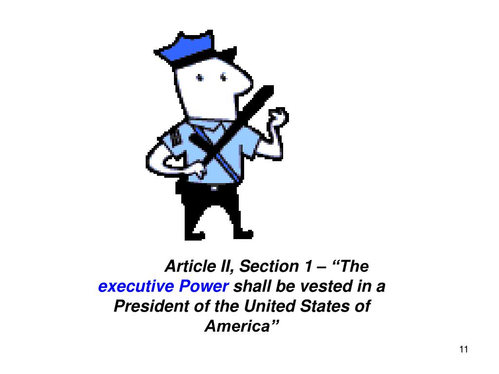 Article II, Section 1 – “The executive Power shall be vested in a President of the United States of America”