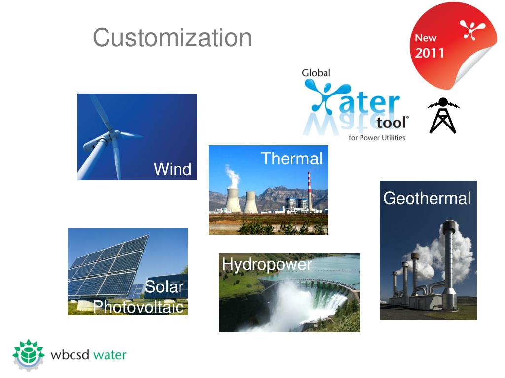 Customization “Adapting the Global Water Tool for the power and utilities sector represents a key milestone, helping us to better report and dialog with stakeholders on how we manage the complex relationship between energy and water.” Claude K Nahon, Senior VP Sustainability, EDF