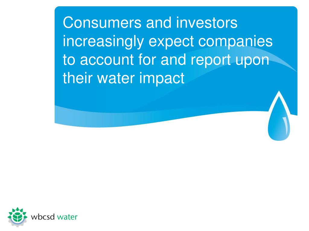 Consumers and investors increasingly expect companies to account for and report upon their water impact