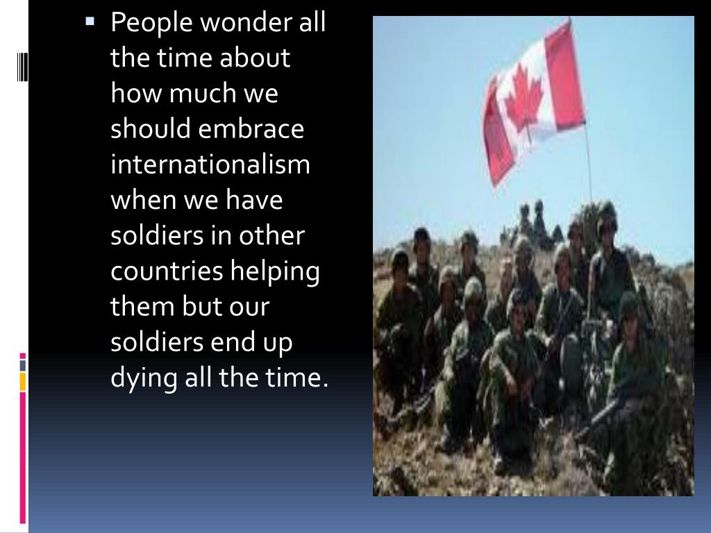 People wonder all the time about how much we should embrace internationalism when we have soldiers in other countries helping them but our soldiers end up dying all the time.