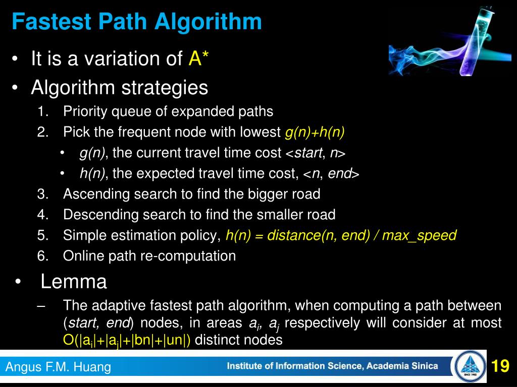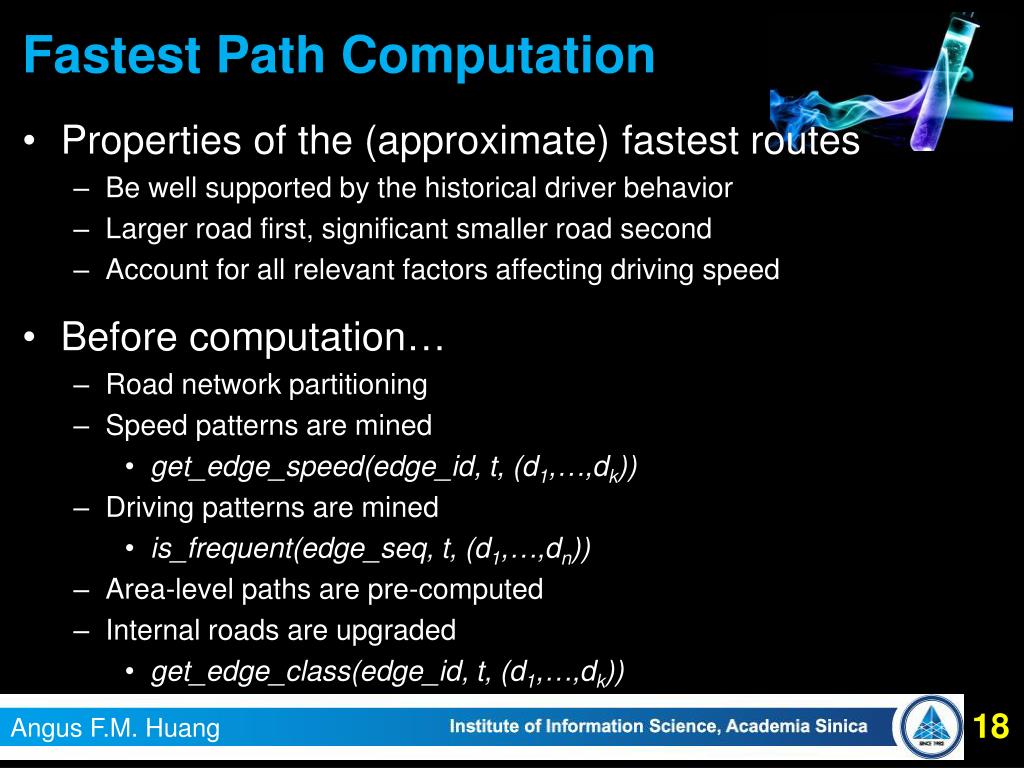 TMSG. Adaptive Fastest Path Computation on a Road Network: A Traffic Mining Approach. 實驗室 : 先進網路技術與服務實驗室 報告者 : 黃福銘 (Angus F.M. Huang). 2013.10.02.