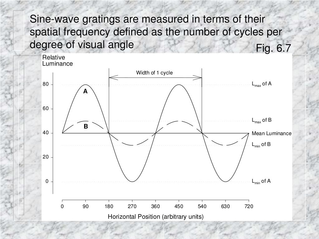 Sine-wave gratings are measured in terms of their spatial frequency defined as the number of cycles per degree of visual angle Fig. 6.7