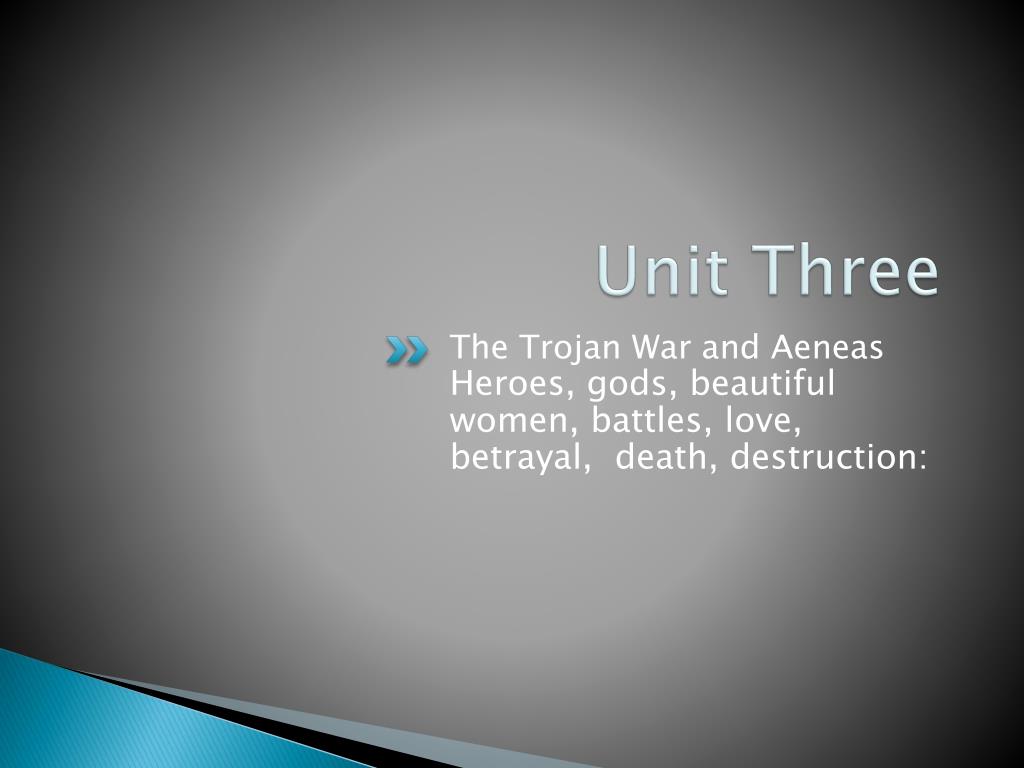 Unit Three The Trojan War and Aeneas Heroes, gods, beautiful women, battles, love, betrayal, death, destruction: