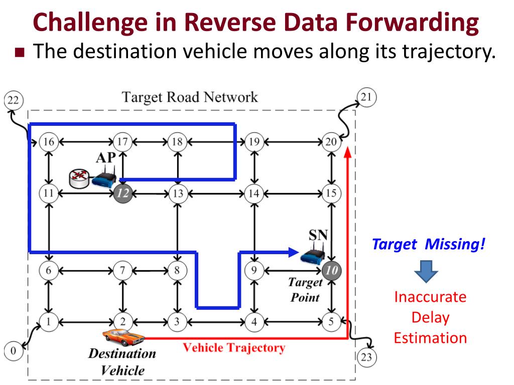 Challenge in Reverse Data Forwarding Target Missing! Inaccurate Delay Estimation • The destination vehicle moves along its trajectory.