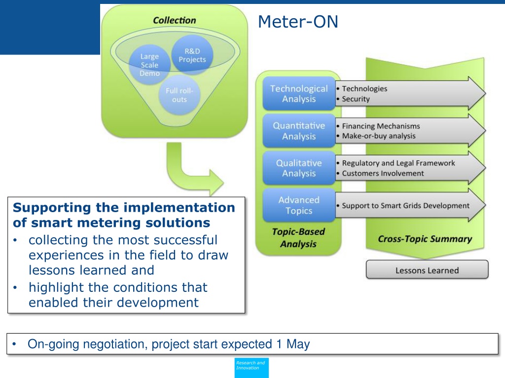 Meter-ON • Supporting the implementation of smart metering solutions • collecting the most successful experiences in the field to draw lessons learned and • highlight the conditions that enabled their development • On-going negotiation, project start expected 1 May