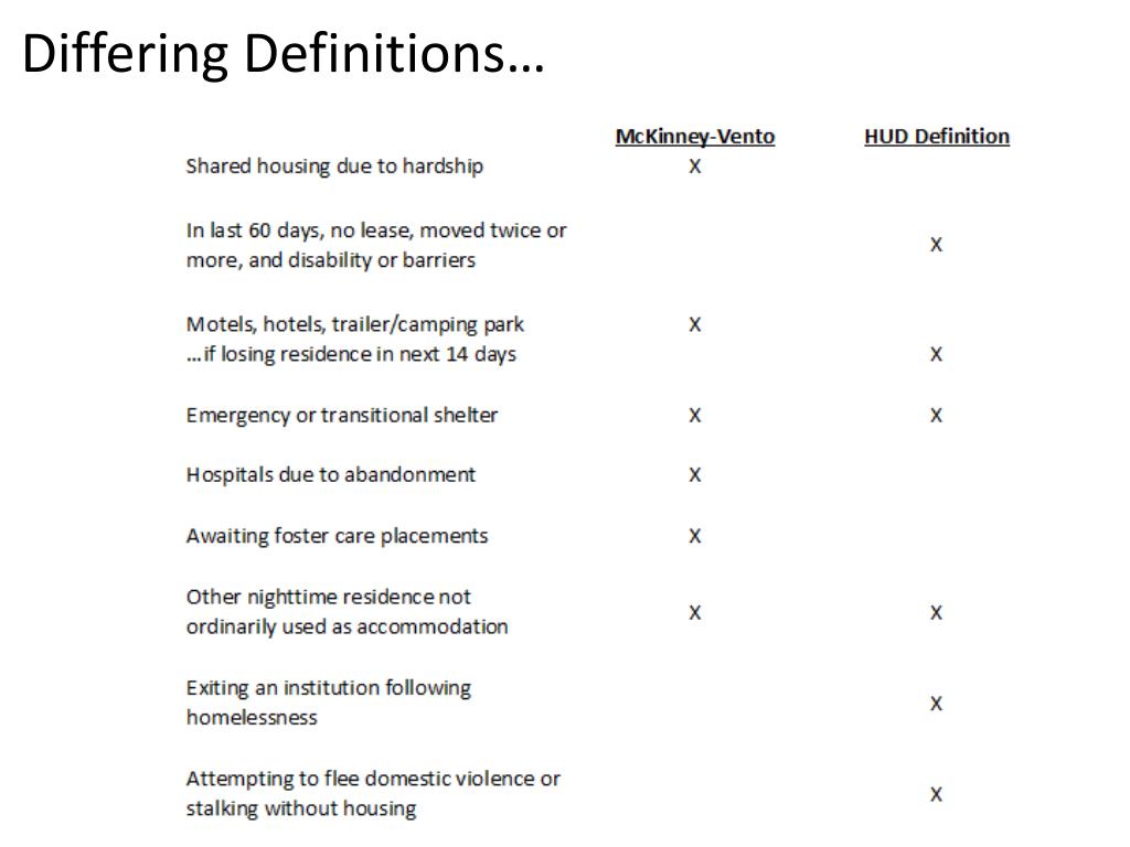 Side by Side Comparison of State Shelter (EH/TH) McKinney-Vento (School)