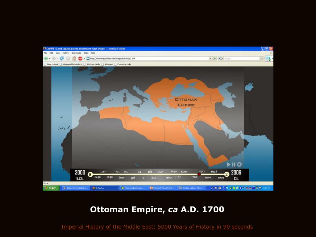 Ottoman Empire, ca A.D. 1700 Imperial History of the Middle East: 5000 Years of History in 90 seconds. http://www.d.umn.edu/cla/faculty/troufs/anth1095/Turkey.html#title. http://news.bbc.co.uk/1/hi/world/europe/4305656.stm. http://news.bbc.co.uk/1/hi/world/europe/4305656.stm.