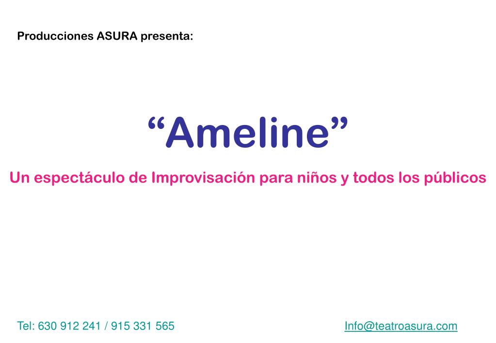 Producciones ASURA presenta: “Ameline” Un espectáculo de Improvisación para niños y todos los públicos Tel: 630 912 241 / 915 331 565 Info@teatroasura.com