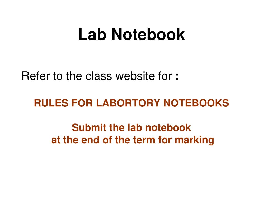 Lab Notebook Refer to the class website for : RULES FOR LABORTORY NOTEBOOKS Submit the lab notebook at the end of the term for marking