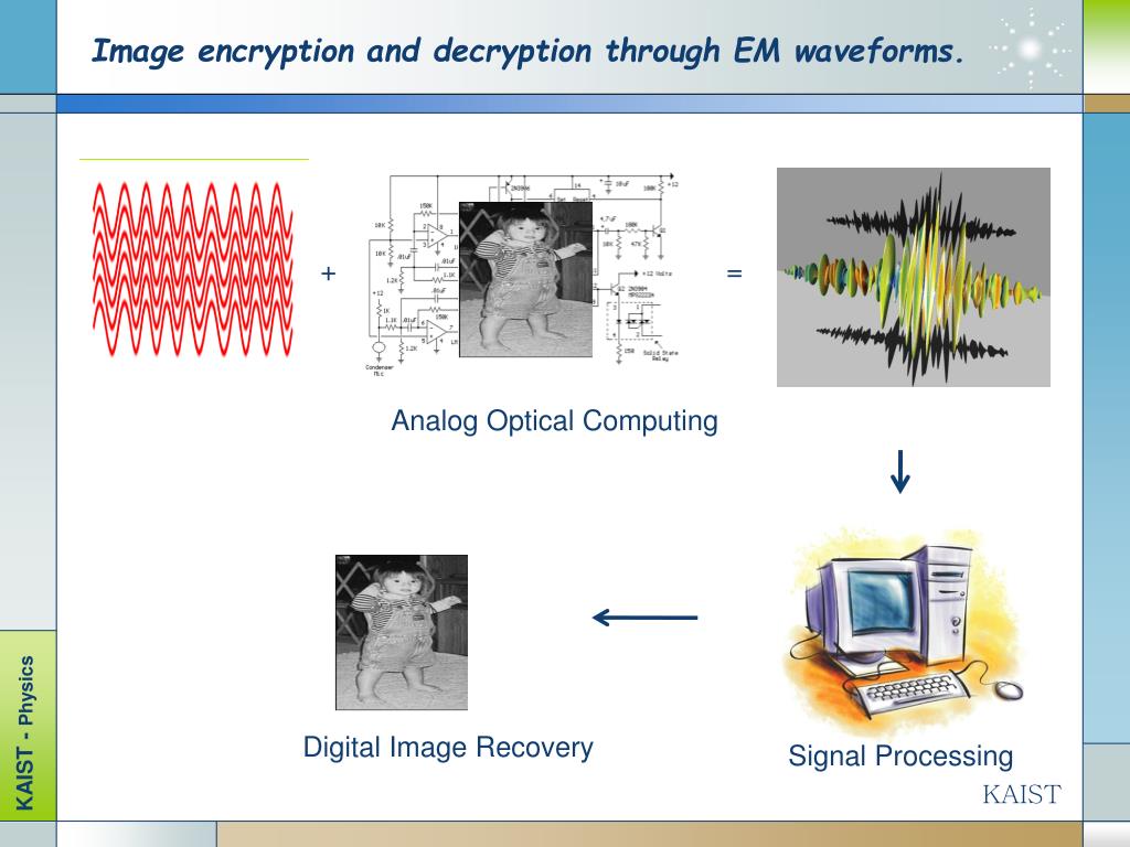 Image encryption and decryption through EM waveforms. + = Analog Optical Computing KAIST - Physics Digital Image Recovery Signal Processing KAIST