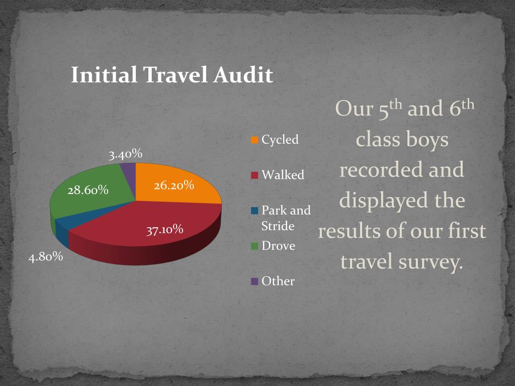 Our 5th and 6th class boys recorded and displayed the results of our first travel survey.