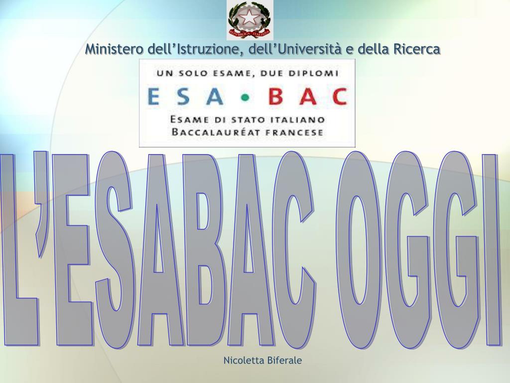 Ministero dell’Istruzione, dell’Università e della Ricerca L’ESABAC OGGI Nicoletta Biferale