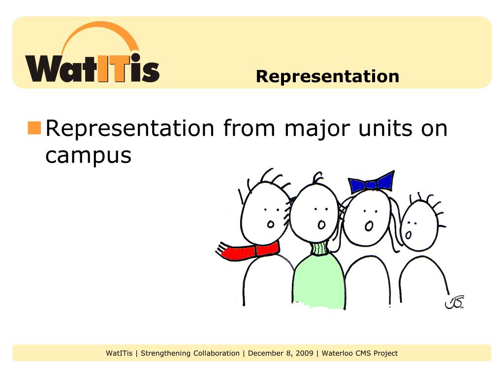 Representation • Representation from major units on campus WatITis | Strengthening Collaboration | December 8, 2009 | Waterloo CMS Project