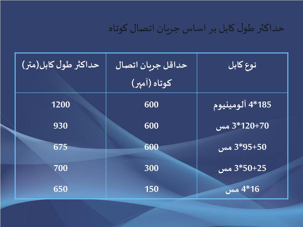 حداکثر طول کابل بر اساس جريان اتصال کوتاه