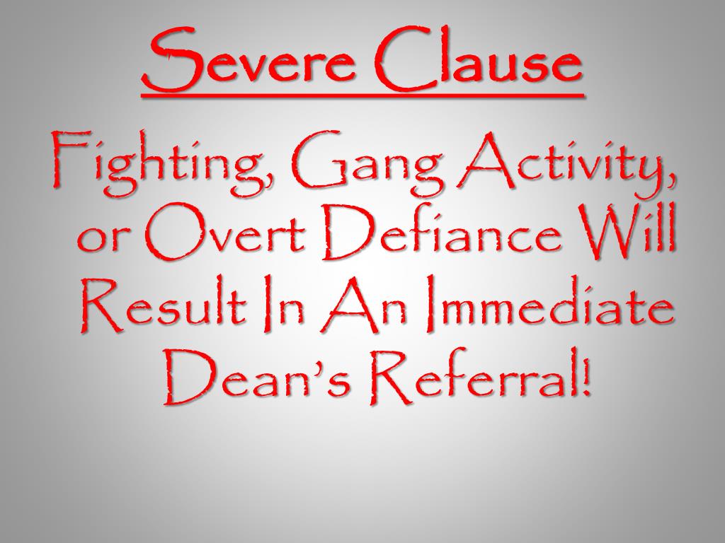 Severe Clause Fighting, Gang Activity, or Overt Defiance Will Result In An Immediate Dean’s Referral!
