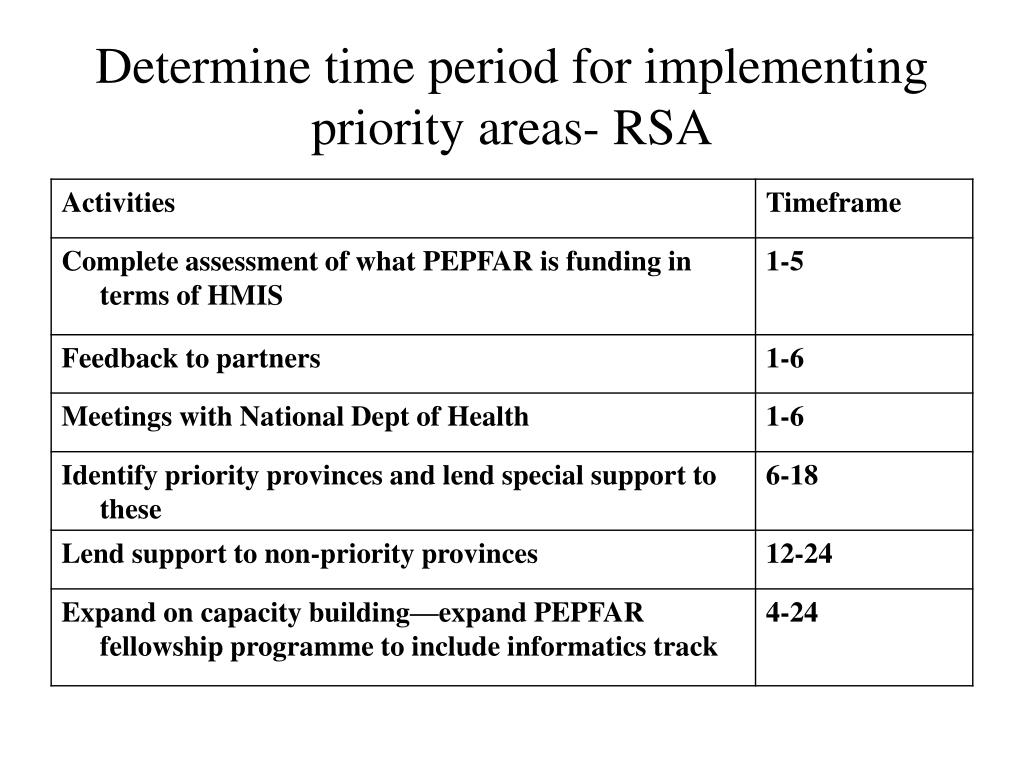 Working Group II RSA and Botswana. Priority Areas (1-2 of 5). Diplomacy: PEPFAR must follow the lead of the government Be a passionate leader through examples of data use Be careful about how PEPFAR funding influences the local environment