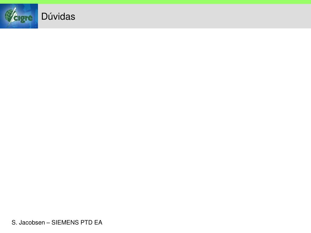 Respostas às questões do REP • Número da questão – 1.9 • Questão - What are the experiences with the use of SCL, especially with the use of the SSD and SCD files to describe the substation functionality and configuration? • Resposta: • Em nossa experiência, não há problemas com o uso desses arquivos; • O SCD é uma ferramenta muito útil na configuração do projeto; • Para o uso do SCD, temos experiência bem-sucedida com o relé regulador de tensão A-eberle.