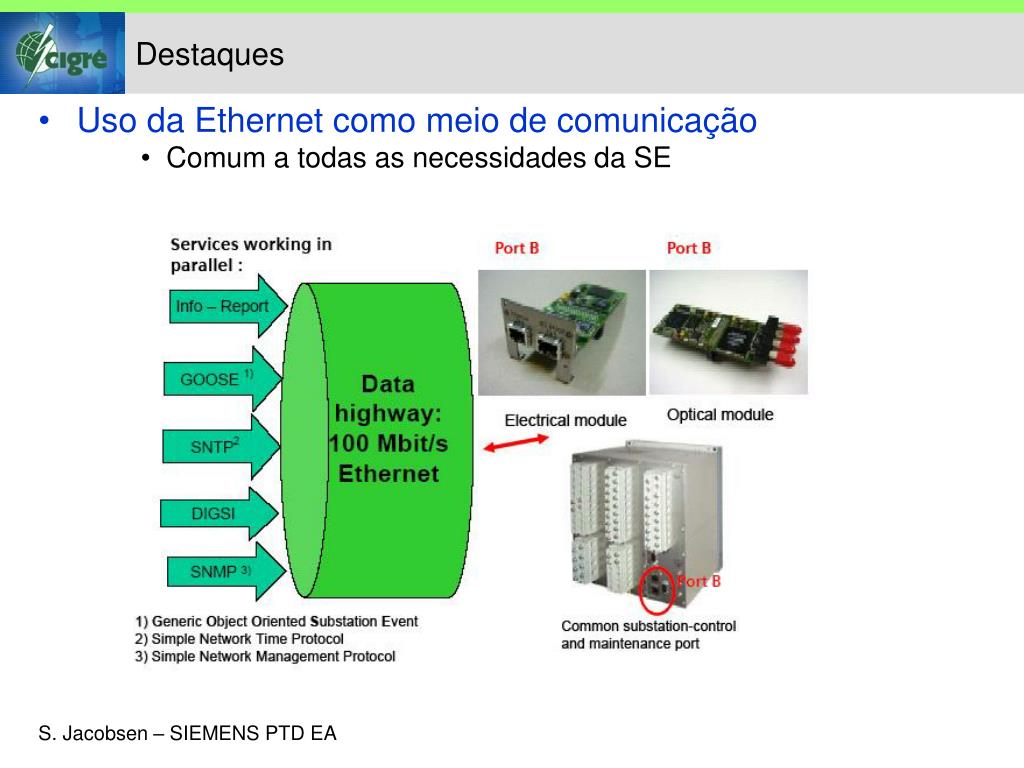Destaques • Uso da Ethernet como meio de comunicação • Comum a todas as necessidades da SE