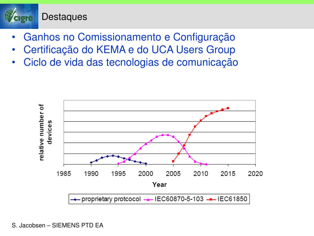 Destaques • Ganhos no Comissionamento e Configuração • Certificação do KEMA e do UCA Users Group • Ciclo de vida das tecnologias de comunicação