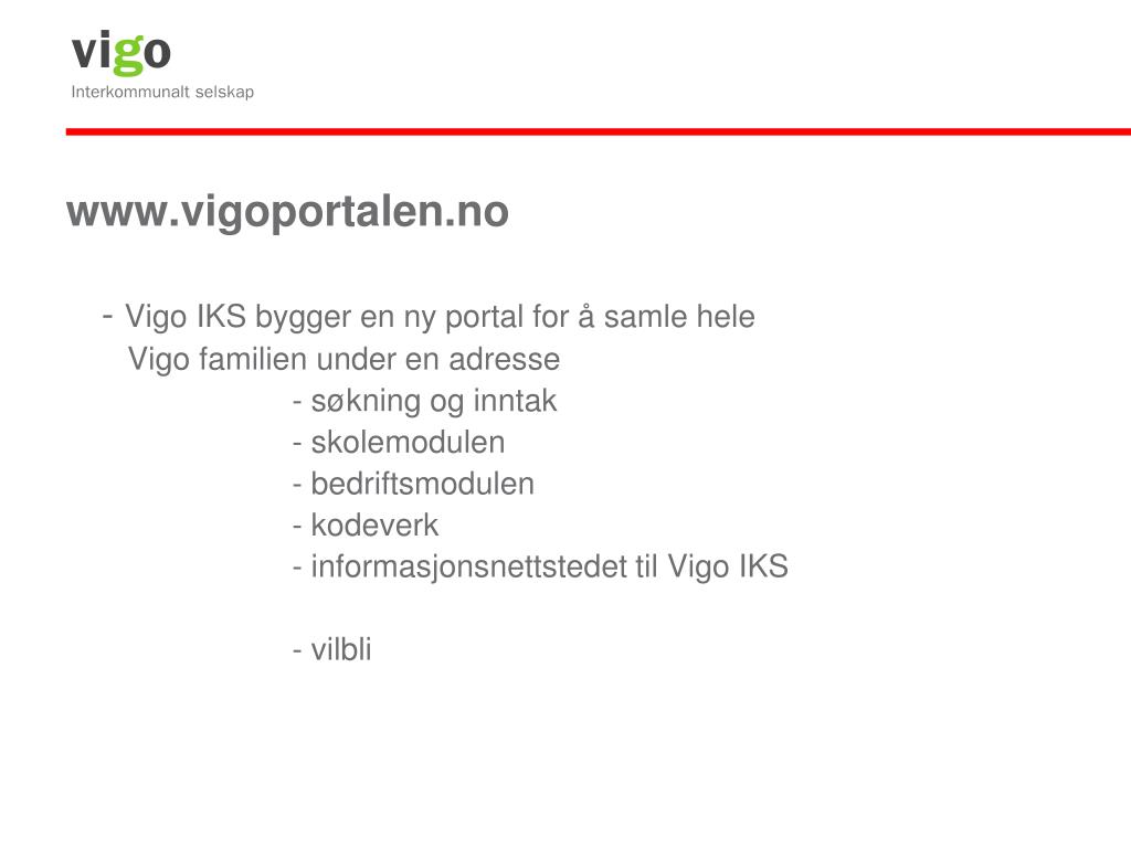www.vigoportalen.no - Vigo IKS bygger en ny portal for å samle hele Vigo familien under en adresse - søkning og inntak - skolemodulen - bedriftsmodulen - kodeverk - informasjonsnettstedet til Vigo IKS - vilbli
