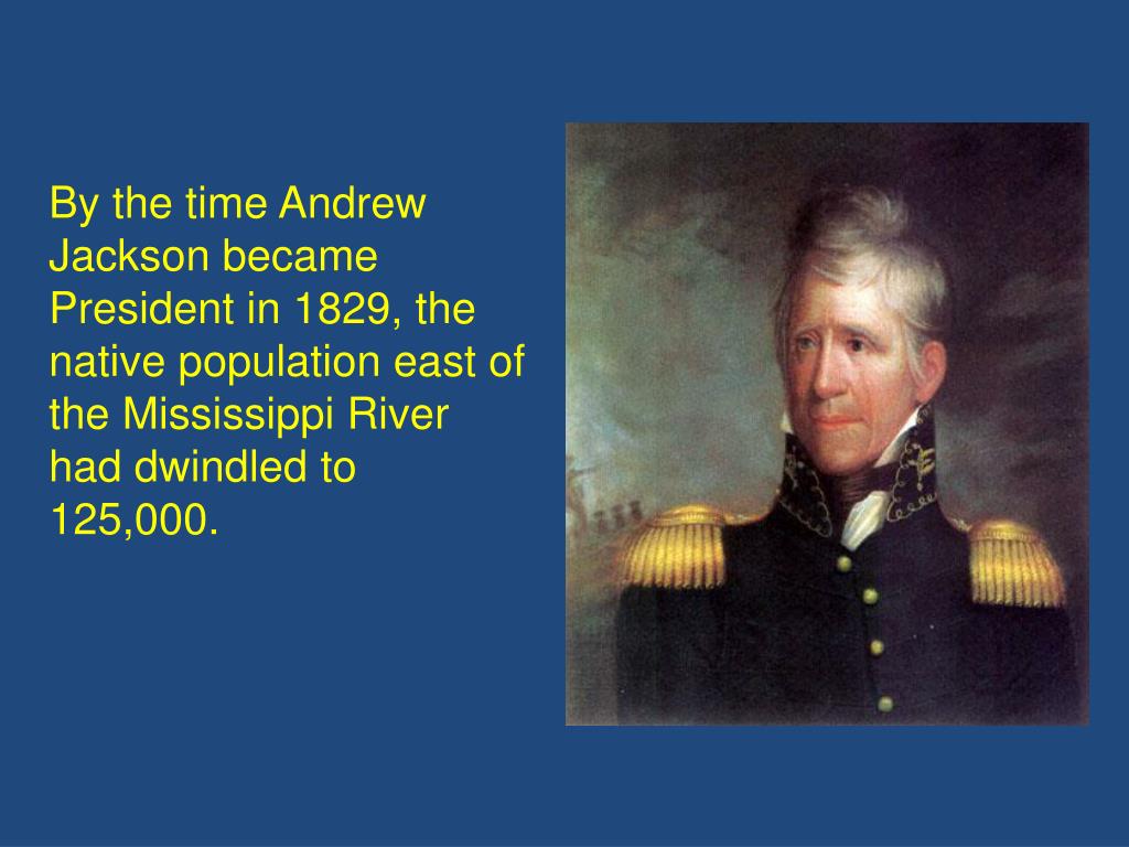 By the time Andrew Jackson became President in 1829, the native population east of the Mississippi River had dwindled to 125,000.