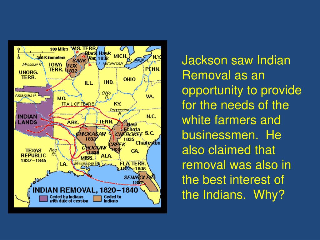 Jackson saw Indian Removal as an opportunity to provide for the needs of the white farmers and businessmen. He also claimed that removal was also in the best interest of the Indians. Why?