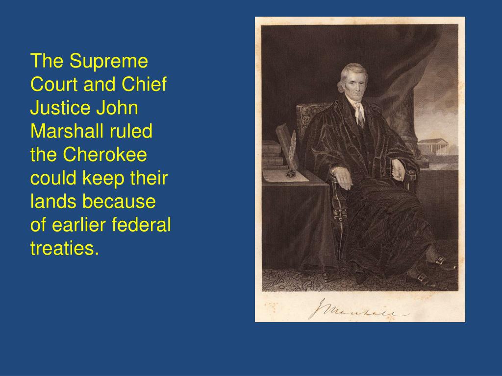 The Supreme Court and Chief Justice John Marshall ruled the Cherokee could keep their lands because of earlier federal treaties.