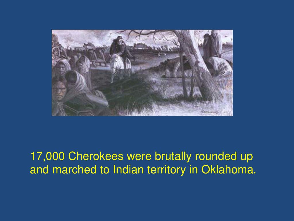 17,000 Cherokees were brutally rounded up and marched to Indian territory in Oklahoma.