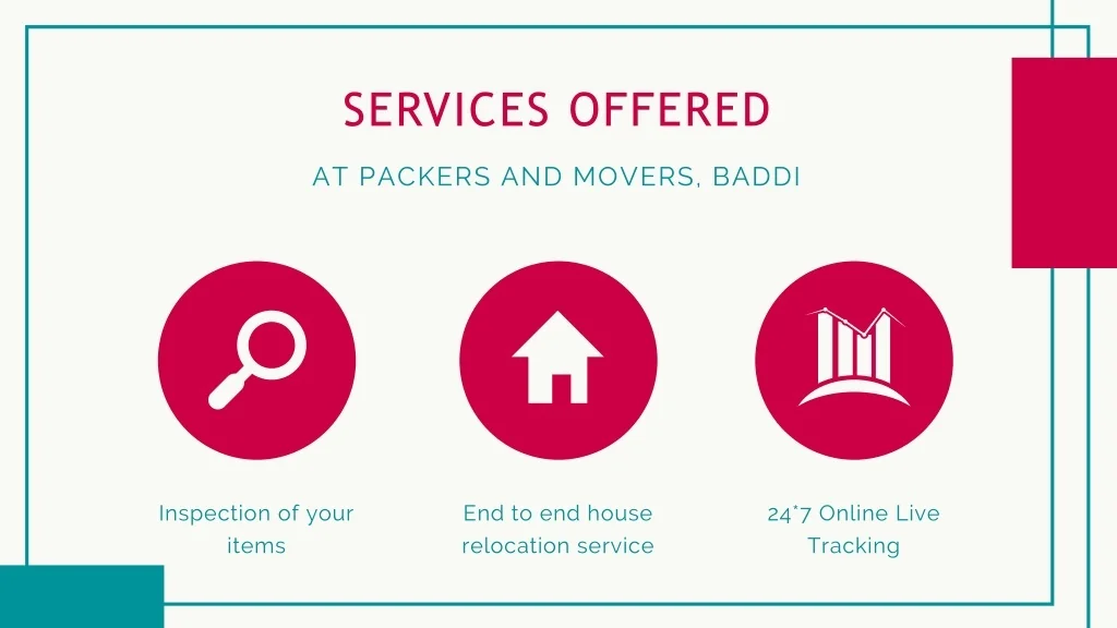SERVICES OFFERED AT PACKERS AND MOVERS, BADDI End to end house relocation service 24*7 Online Live Tracking Inspection of your items