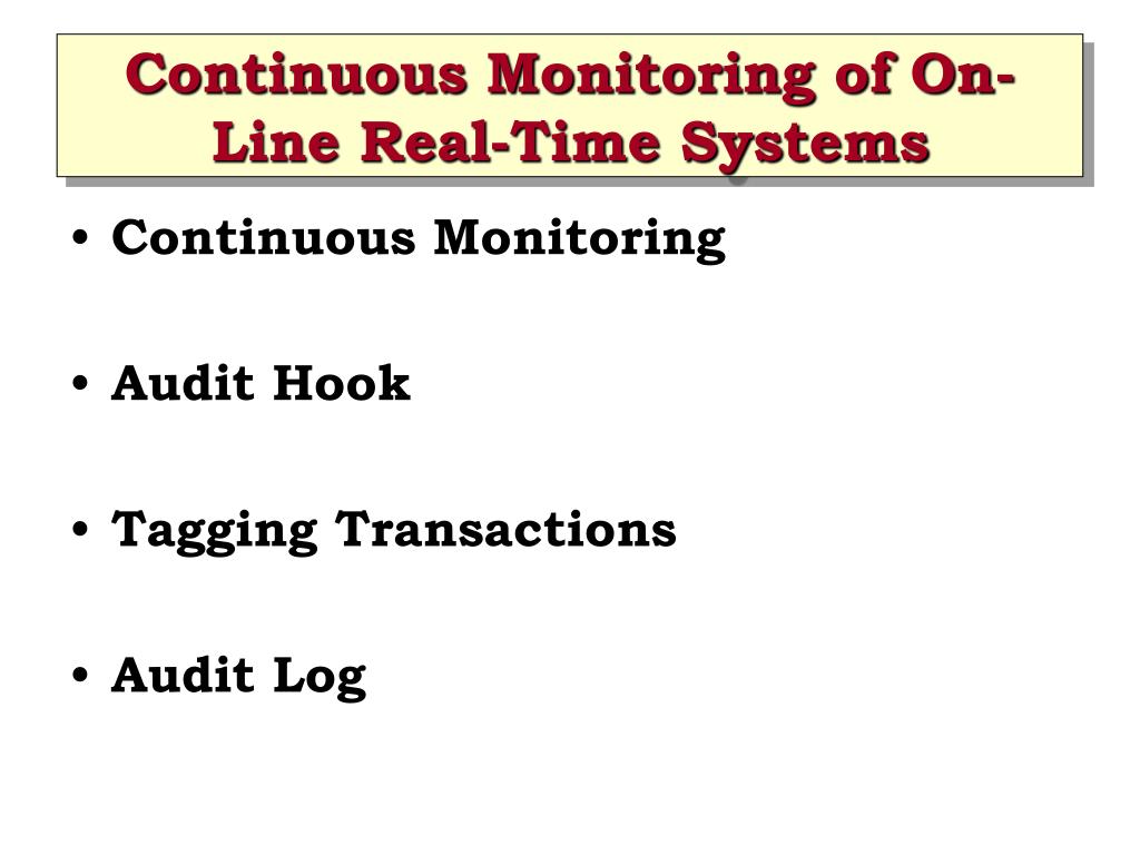 Continuous Monitoring of On-Line Real-Time Systems • Continuous Monitoring • Audit Hook • Tagging Transactions • Audit Log