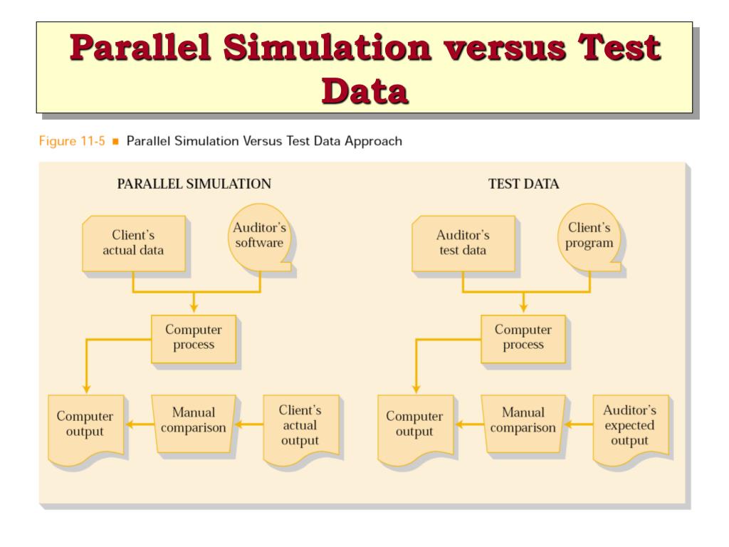 Types of CAATs • Parallel Simulation • Test Data • Integrated Test Facility • Continuous Monitoring of On-line Real-time Systems
