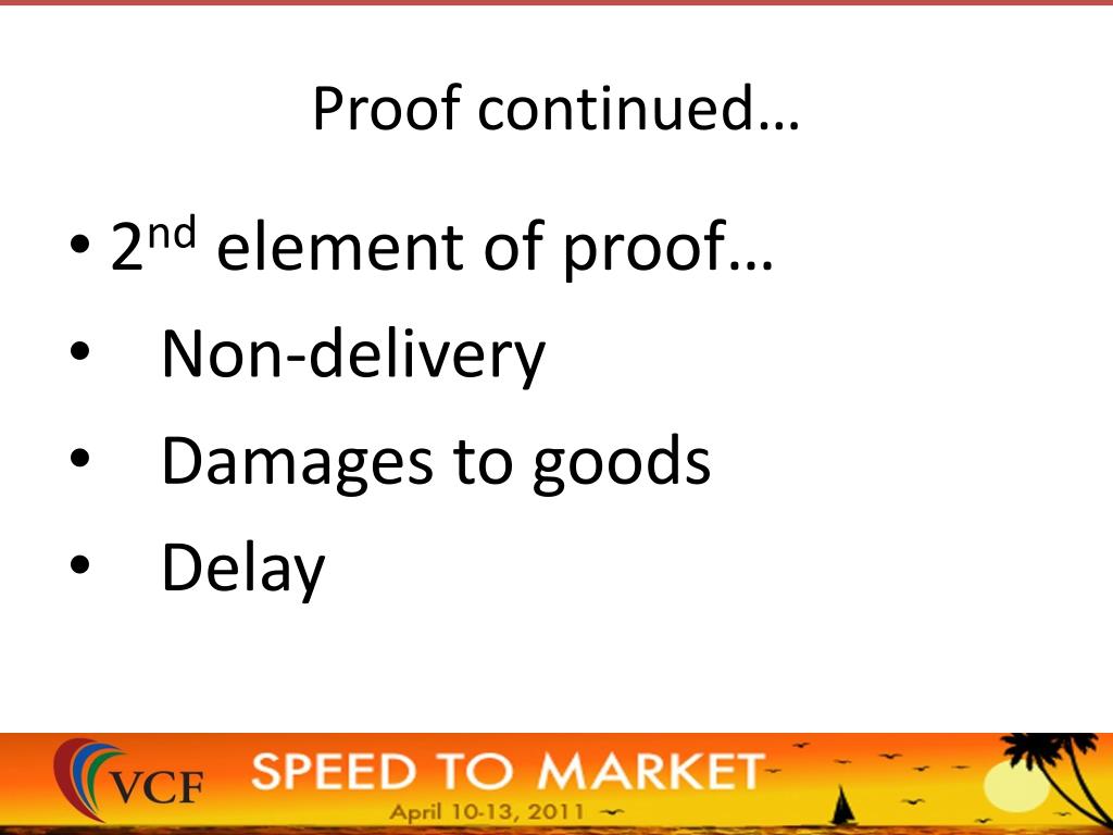 Proof continued… • 2nd element of proof… • Non-delivery • Damages to goods • Delay