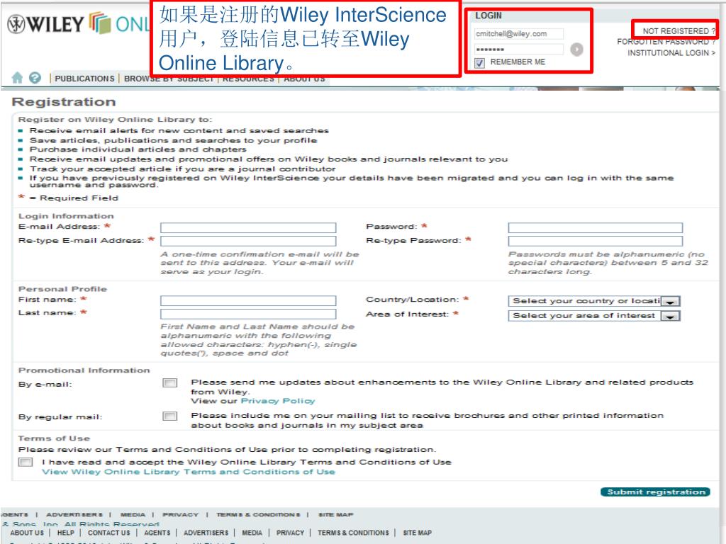 如果是注册的Wiley InterScience用户,登陆信息已转至Wiley Online Library。