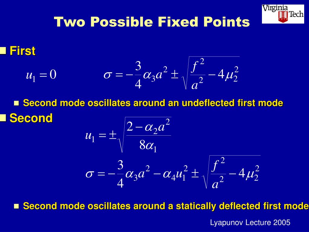 Two Possible Fixed Points • First • Second mode oscillates around an undeflected first mode • Second • Second mode oscillates around a statically deflected first mode Lyapunov Lecture 2005