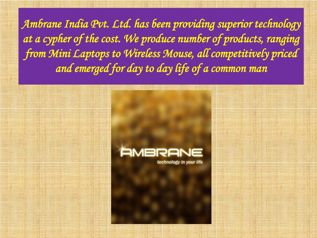 Ambrane India Pvt. Ltd. has been providing superior technology at a cypher of the cost. We produce number of products, ranging from Mini Laptops to Wireless Mouse, all competitively priced and emerged for day to day life of a common man.
