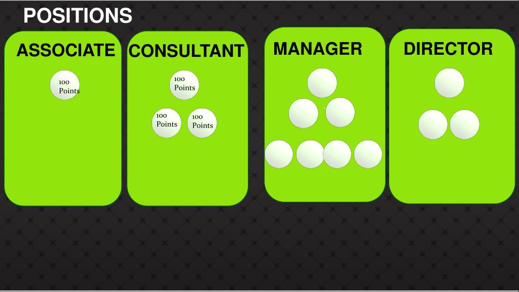 POSITIONS ` MANAGER DIRECTOR ASSOCIATE CONSULTANT 100 Points 100 Points 100 Points 100 Points $50 ASV $50 ASV