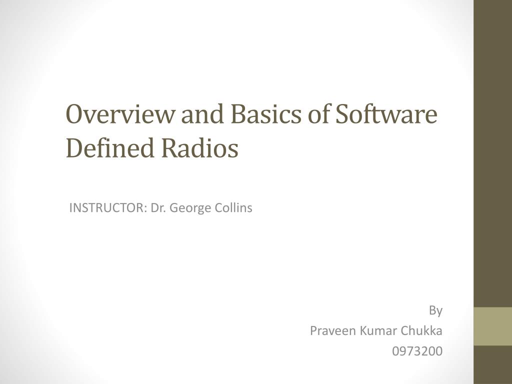 Overview and Basics of Software Defined Radios. INSTRUCTOR: Dr. George Collins By Praveen Kumar Chukka 0973200. Software Defined Radio. Software-Defined Radio (SDR) is the technology wherein software modules running on a generic hardware platform consisting of DSPs and