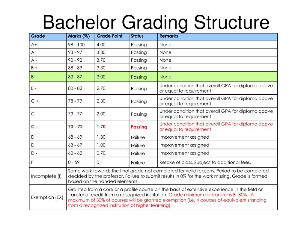 Bachelor Assessment Structure • 1 Credit = 25 contact hours • Each course = 6 credits (25 contact hrs / wk x 6 wks = 150 contact hrs.) • 12 courses = 72 credits (6 credits / course x 12 courses) • Capstone Project = 48 credits • Total credits = 120 credits (ECTS – European Credit Transfer System)