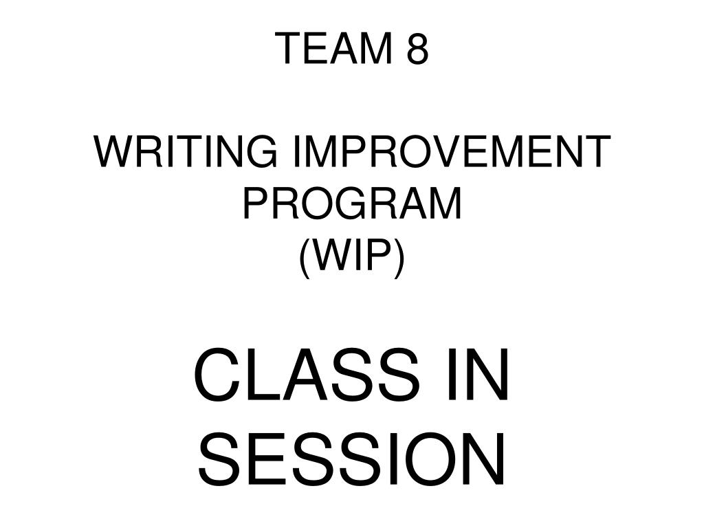 Section 8 Writing Improvement Program Meeting 5 13-01. TEAM 8 WRITING IMPROVEMENT PROGRAM (WIP) CLASS IN SESSION. Team 8 WIP Schedule. As of 1 AUG 12. Meet in Room 2133 & 2132. Pronoun Problems. AGREE in NUMBER - If the pronoun takes the place of a singular noun, you