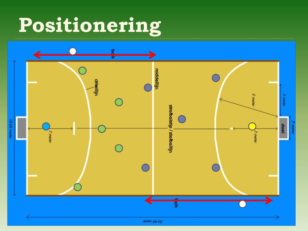 Punten van aandacht (3) Self-pass • In principe net als op het veld. • De speler moet de bal duidelijk controleren ! (stilleggen en spelen) • Vrije push voor aanval, dicht bij de cirkel, wordt op 3 meter van de cirkelrand genomen. • Aanvallende spelhervatting op helft verdediging iedereen op 3 meter afstand.