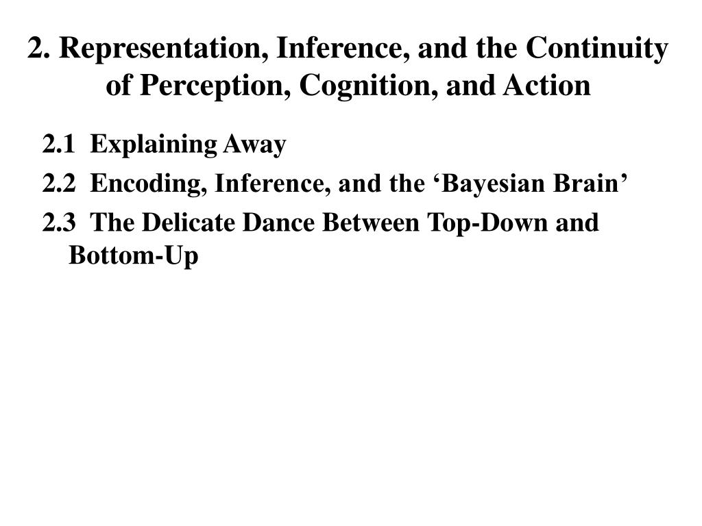 2. Representation, Inference, and the Continuity of Perception, Cognition, and Action 2.1 Explaining Away 2.2 Encoding, Inference, and the ‘Bayesian Brain’ 2.3 The Delicate Dance Between Top-Down and Bottom-Up