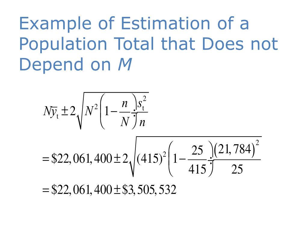 Estimation of a Population Total *Note: This formula assumes a randomly ordered population