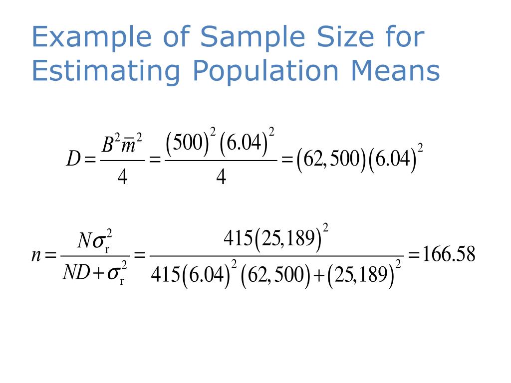 Example of Sample Size for Estimating Population Means *Note: Because M is not known, is estimated by