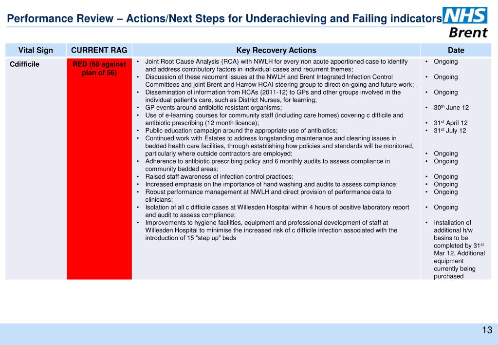 Performance Review – Actions/Next Steps for Underachieving and Failing indicators 13
