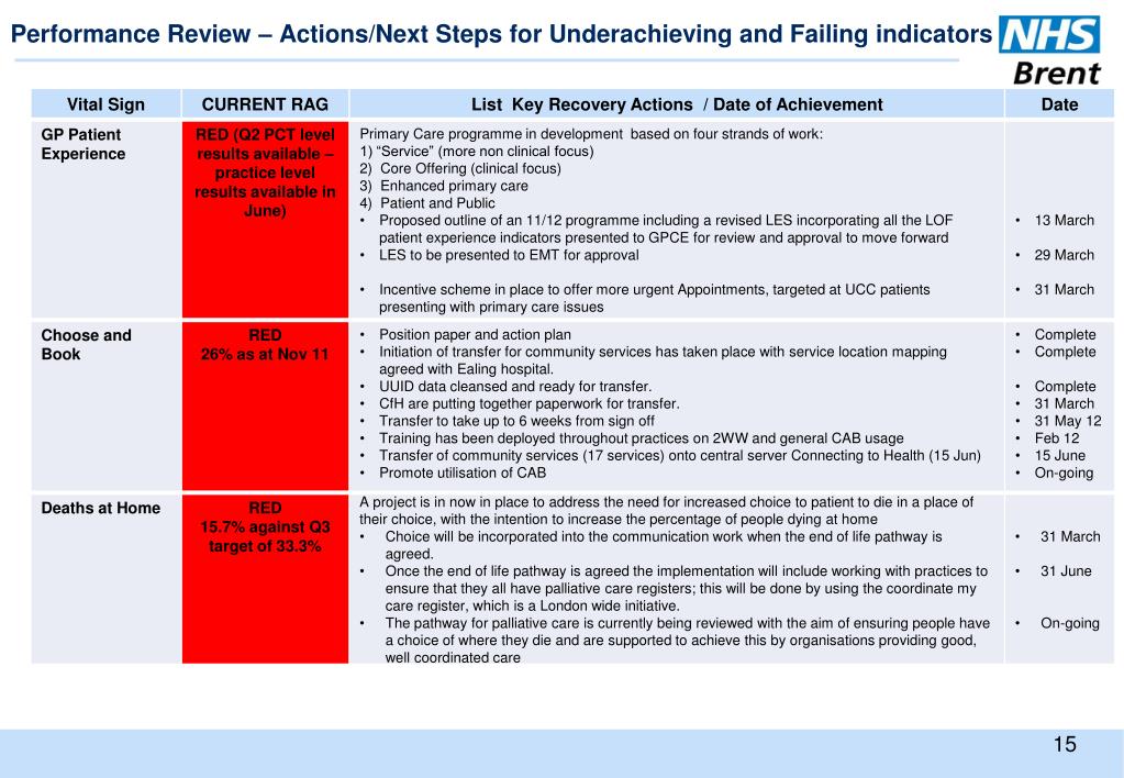 Performance Review – Actions/Next Steps for Underachieving and Failing indicators 15