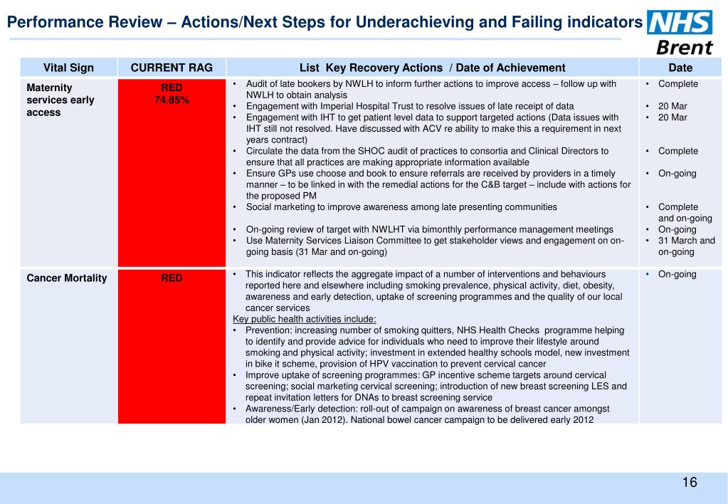 Performance Review – Actions/Next Steps for Underachieving and Failing indicators 16