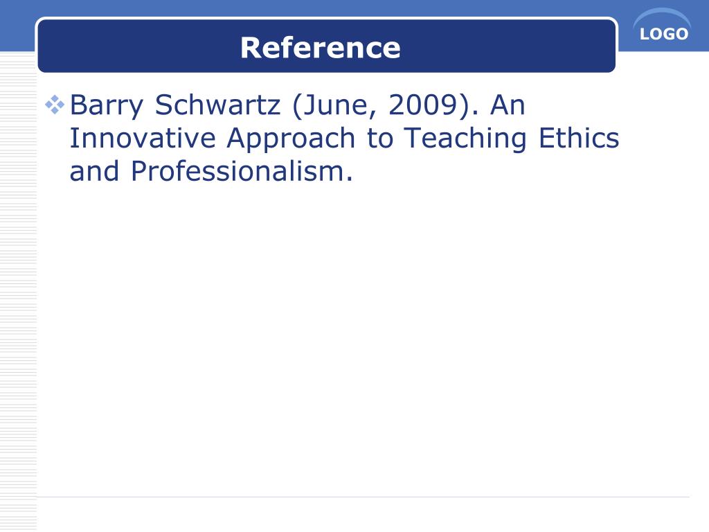 Reference • Barry Schwartz (June, 2009). An Innovative Approach to Teaching Ethics and Professionalism.