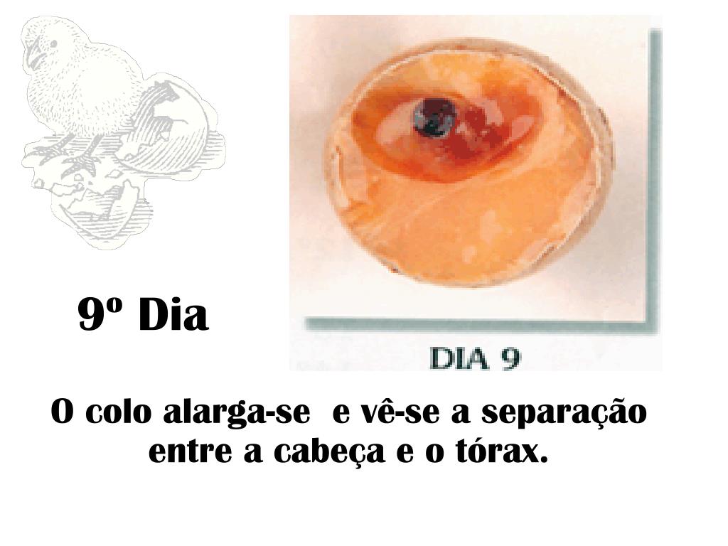 9º Dia O colo alarga-se e vê-se a separação entre a cabeça e o tórax.