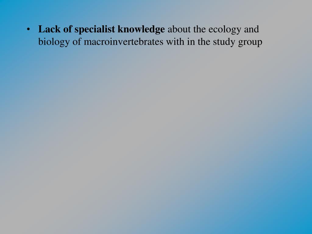Lack of specialist knowledge about the ecology and biology of macroinvertebrates with in the study group