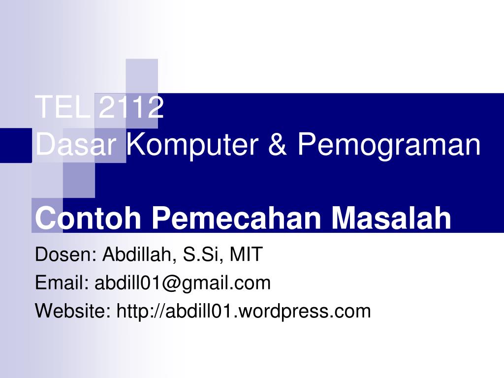 TEL 2112Dasar Komputer & PemogramanContoh Pemecahan Masalah Dosen: Abdillah, S.Si, MIT Email: abdill01@gmail.com Website: http://abdill01.wordpress.com